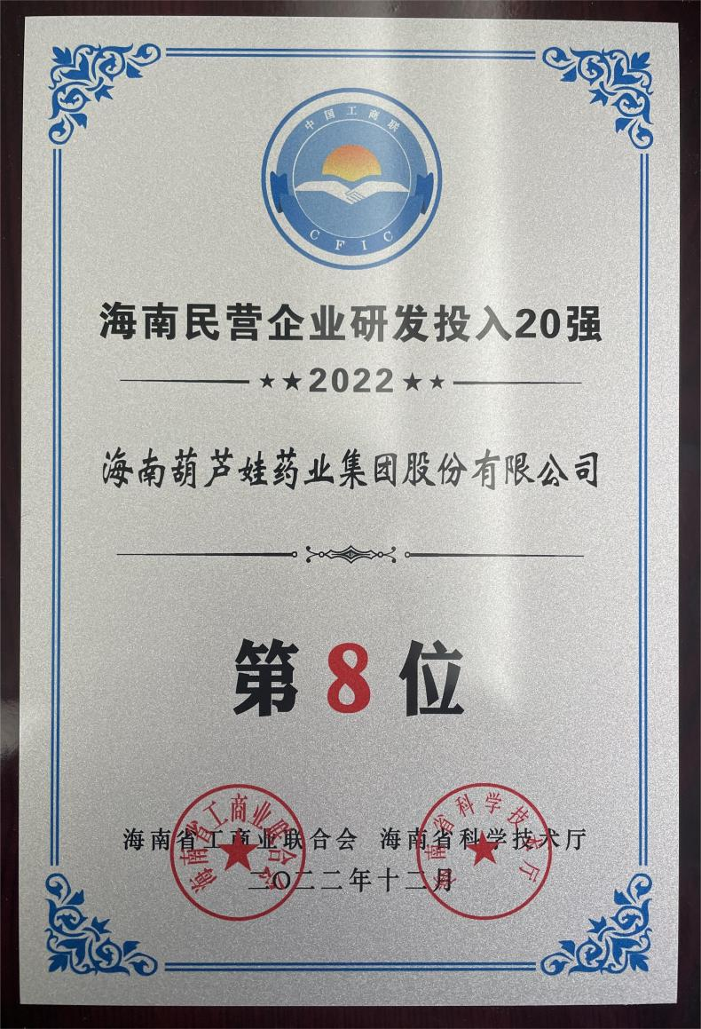 12月23日,2022海南民营企业50强和研发投入20强发布会在海口举行。会上发布了“2022海南民营企业50强”“2022海南民营企业研发投入20强”榜单和分析报告。7790必发集团药业再次荣登两榜,在海南民营企业50强榜单中位列第25位,较去年上升8位,这也是公司连续三年登榜;在海南民营企业研发投入20强中位列第8位,较去年上升7位。