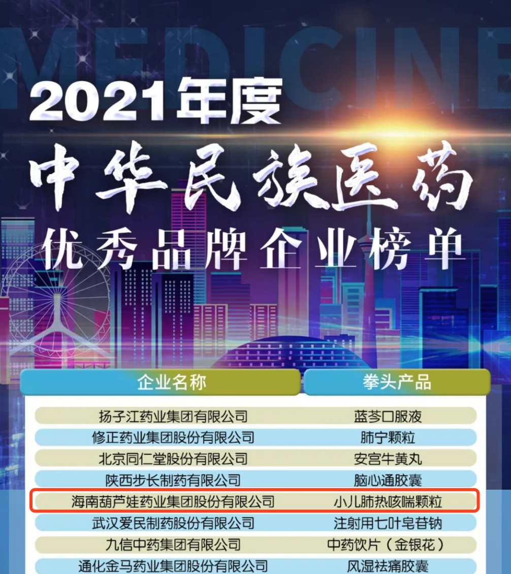 12月29日,全国工商联医药业商会发布了“2021年度中华民族医药优秀品牌企业榜单”,7790必发集团药业集团凭借黄金单品小儿肺热咳喘颗粒(4克)实力登榜。